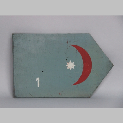 Květnovým předmětem měsíce je směrová tabulka se symboly čísla 1, bílé osmicípé hvězdy a červeného půlměsíce. Sloužila k orientaci dobrovolníků z 1. Turkestánského pracovního praporu při jejich přesunu v květnu 1945. Pochází ze Železného Brodu, kde byla tehdy umístěna ve městě a ukazovala směr procházejícím vojenským jednotkám.
