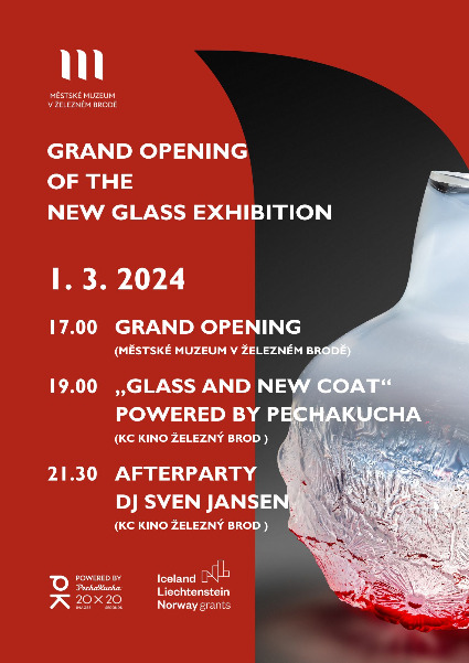 The exhibition of the results of the XIth year of the Summer Glass Workshop glass symposium took place in the glass exhibition of the Municipal Museum. Thanks to a subsidy from the EEA and Norwegian funds, this year’s international symposium was also attended by three Norwegian glass artists – Jeanne Sophie Aas, Ida Siebke and Kjersti Johannessen – who, together with Slovak artists Palo Mach, Jaroslav Bejvl and Marian Volráb, worked in the glassworks of the Železný Brod glass school. The seventh symposium participant, Tomáš Košt'ál, realized his design with the help of the glass masters at Detesk, which has been a partner of the symposium for the fifth year.